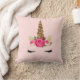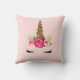 Coussin Corne de Licorne Pailletée Or avec Roses Roses