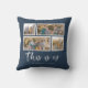 Oreiller présentant les mots "c'est nous" dans un script élégant blanc avec 4 photos avec une bordure blanche autour d'elles disposées côte à côte sur les côtés avant et arrière, ce qui fait 8 photos au total que vous pouvez remplacer par vos propres photos sur un fond de couleur modifiable (cliquez sur "personnaliser" pour changer la couleur de fond). Vous pouvez également ajouter le nom de votre famille et l'année de création. Parfait pour la décoration intérieure, les jeunes mariés, les souvenirs de famille, etc.