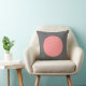 Un coussin avec un design en cercle abstrait minimal en rose doux sur 60% gris.