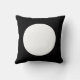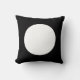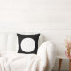 Un coussin avec un design de cercle abstrait minimal en blanc et noir.