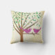 Coloré Fuchsia rose et vert Coussin moderne stylisé élégant Arbre peint avec Inséparables modernes lin imprimé Motif Arrière - plan