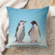 Coussin Couple de manchots magnifiques sur fond bleu clair