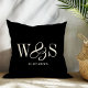 Coussin Couples de mariage à initiale noire élégante