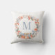 Un coussin de vacances intemporel avec une couronne de Noël élégante à l'aquarelle dans des tons doux de bleu poussiéreux, rouge et pêche, encadrant délicatement un monogramme personnalisé en typographie moderne.