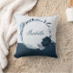 Coussin Couronne florale élégante bleu marine et bleu pous