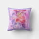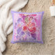 Un beau coussin ou coussin aux fleurs murales dans les tons romantiques de rose, lilas et mauve, avec une délicate bordure pâle, d'une aquarelle de Judy Adamson.