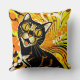 Portrait abstrait retro coloré d'un chat noir pour un amoureux des chats dans un coussin coloré