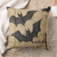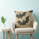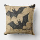 Coussin Crème Denim Grunge Patchwork avec chauves-souris