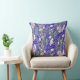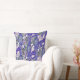 Lancer l'oreiller avec motif floral botanique, élaboré à partir d'un croquis de vie dessiné à la main. Belles fleurs printanières - crocus blancs avec des carottes roses sur arrière - plan bleu ultra-amarine, points blancs s'étalant autour d'eux. © Clipso-Callipso / Julia Khoroshikh