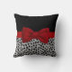 Jolie élégante peau de léopard noir et blanc et arrière - plan noir enveloppé d'un bel arc rouge et d'image ruban
