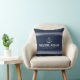 Add a touch of maritime charm to your cabin with this custom nautical throw pillow, featuring a deep navy blue background and classic white rope and striped borders. A rustic anchor centers the design, accompanied by the vintage-style phrase "Welcome Aboard" and space for your boat name and establishment year. This personalized cushion is the ideal decorative accent for a yacht salon, captain’s chair, or coastal living room. © Kimbellished, LLC