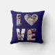Celebrate your love story with this customizable LOVE photo collage pillow, featuring a bold navy blue background and space for four personal photos. Each letter in the word "LOVE" is filled with your own images— with the “O” in the shape of a heart for a sweet and romantic touch.