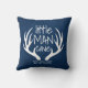 Votre petit bonhomme adorera ce coussin amusant ! Ce design présente un fond texturé bleu, des bois et une typographie personnalisée. Ajoutez la date de naissance de votre fils pour compléter le look.