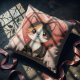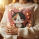 Coussin Cute Calico Cat Heart Kawaii Valentine's Art