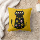 Coussin Cute Chat Floral Noir