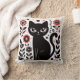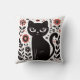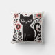 Coussin Cute Chat Noir avec grands yeux et fleurs