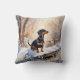 Coussin Cute Dachshund hiver Aquarelle de neige race de ch