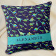 Coussin Cute Dinosaur Nom personnalisé Bleu