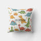 Un dinosaure mignon et capricieux jette un oreiller pour la chambre d'un enfant ou la salle de jeux. Ajoutez le nom de votre enfant.