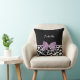Un mignon imprimé girafe noir et blanc lance l'oreiller avec un ruban violet lavande ceinturé attaché dans un arc féminin. Personnalisez ce joli design poster de animal en ajoutant votre nom. Le côté inverse a un motif de girafe noir et blanc. Image imprimée plate, pas l'arc réel.