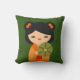 Jolies poupées Kokeshi japonaises colorées en orange et vert olive et styles motif. Très kawaii et japonais mignon. Célèbres poupées japonaises.