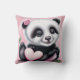 This is an illustration of a panda holding a pink heart. The background is pink with 2 bamboo leaves. The panda is black and white with fluffy fur and is sitting. The panda is a symbol of peace, harmony, and gentleness. It is a gentle creature that lives in balance with nature. The panda bear's expression is adorable, making this image a heartwarming sight.