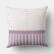 Un carré à rayures de lavande girly lance l'oreiller avec de mignons pois violets et blancs et un ruban élégant de polka violet clair attaché dans un arc chic. Personnalisez en ajoutant le nom de votre jeune femme spéciale. Image imprimée plate d'un arc, PAS un ruban réel.