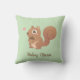 Un mignon oreiller à lancer avec l'illustration d'un petit écureuil tenant sur une glande. Personnalisez avec le nom de l'enfant pour une jolie pièce décorative pour la petite garderie ou la chambre pour enfants! La couleur Arrière - plan peut être modifiée en mode personnalisation.