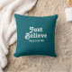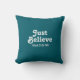 This cute teal pillow features a Bible verse from the Gospel of Mark and teal stripes on the back.