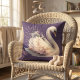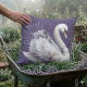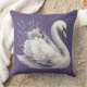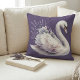 Coussin Cygne à l'aquarelle avec florales lavande