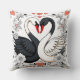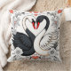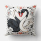 Coussin Cygnes noirs et blancs entourés de motifs floraux