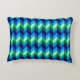 Un accent coussin avec un design motif et coloré de chevrons en vert citron, bleu royal turquoise, bleu océan et bleu ciel.