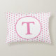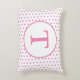 L'avant design présente un arrière - plan blanc à un motif de pois roses. Le centre dispose d'un monogramme rose personnalisable contre un arrière - plan blanc. Reverse présente un arrière - plan rose vif à nommer dans une police blanche et cursive. Conçu pour se coordonner avec la collection de chambre pour enfants rose et blanc.