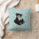 La décoration de la chambre du bébé Sweet met l'accent sur l'oreiller jeté dans un motif en quatrefoil blanc et aqua, avec des graphiques d'un mignon ours en peluche marron foncé. Customisez d'ajouter tout texte que vous voulez à cet adorable coussin. Produits correspondants disponibles.