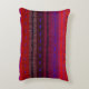 Cette coussin décorative aux accents d'art dispose d'une image d'un motif abstrait coloré ressemblant à des bandes horizontales tissées. Les couleurs brillantes du rouge, du violet, du bleu et du noir semblent briller.