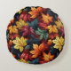 Ce coussin d'accent de forme ronde est montré dans une belle impression colorée de feuilles d'automne. pixabay