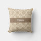 Un beau motif vintage damassé en beige sur un arrière - plan clair crée un élégant oreiller à lancer. Personnalisez avec votre nom dans un groupe beige foncé au milieu.
