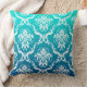 Coussin Damas Florales Blanches Sur Gradient Turquoise