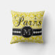 Ce carreau vintage chic jaune noir, blanc et lumineux de motif de damassé avec a personnalisé votre initiale de monogramme, le mot "Paris" avec Tour Eiffel et une ligne des diamants blancs imprimés sur une bande noire semblera extraordinaire dans votre chambre à coucher ou salon comme coussin d'accent. La galerie Gifts© Elke Clarke de monogramme conçoit le ©