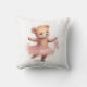 Ours de ballerine d'aquarelle mignon avec tutu rose et chaussons sur un arrière - plan blanc. Le côté arrière du coussin a des coeurs roses miniatures.
