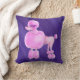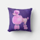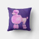 Un chien de caniche rose blanc caractère aquarelle art sur un oreiller abstrait violet foncé ultra violet hued toned jeté oreiller. L'art original de l'aquarelle pour chien et la peinture et le design abstraits arrière - plans par Sarah Trett pour www.mylittleeden.com