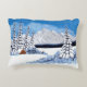 Un accent coussin avec une belle scène hivernale incluant montagnes enneigées, cabine rustique et verdure enneigée. Le texte peut être personnalisé ou supprimé. Oeuvre originale de W.B.