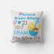 Le souvenir parfait pour la nouvelle mère. Ce coussin de bébé peut être personnalisé avec le nom, la date de naissance, le poids, la longueur, et le temps du bébé de la naissance. Conception mignonne superbe avec un parapluie de point de polka rempli d'animaux adorables. Il y a une girafe, un singe et un lion. Peut être customisé pour adapter à n'importe quel goût. Ordre aujourd'hui.