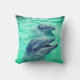 Ce coussin a une jolie photo de deux dauphins dessus.