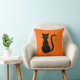 Une silhouette d'un chat noir sur un arrière - plan orange. Le chat se repose avec la queue augmentée. Une étoile verte est fixée à la queue.