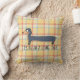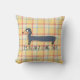 Chien mignon en dachshund sur plaid jaune pâle.