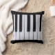 Coussin noir et blanc de clés de piano. Customisez ce produit en ajoutant le texte ! Visitez www.zazzle.com/lsarmentoart pour des produits plus uniques.