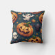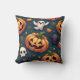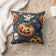 Coussin intérieur à motifs avec citrouille d'Halloween et crâne de chauve-souris fantôme