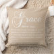 Un coussin décoratif pour la maison avec le mot "grâce" et au-dessous des définitions pour le mot.
