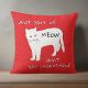 Coussin de chat drôle : quelle partie de miaou ne comprends-tu pas. Coussin de chat rouge, noir et blanc avec des empreintes de pattes discrètes en arrière-plan. Fait un cadeau amusant pour un amateur de chats et une décoration charmante pour votre canapé. Irait bien avec un canapé ou une chaise grise ou marron.